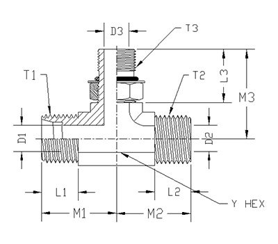 ITEM | P/N | Y HEX | T1 | T2 | L1 | L2 | D1 | D2 |