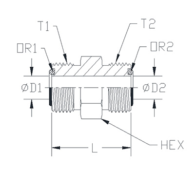 ITEM | P/N | HEX | T1 | T2 | L | D1 | D2 | OR1 | OR2 |
