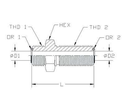 ITEM | P/N | HEX | THD 1 | THD 2 | L | D1 | D2 | OR 1 | OR 2 |