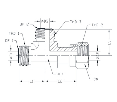 ITEM | P/N | HEX | THD 1 | THD 2 | THD 3 | L1 | L2 | L3 | D1 | D2 | D3 | OR 1 | OR 2 | SN |