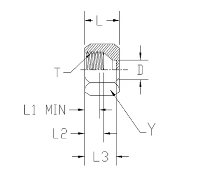 ITEM | P/N | Y FLATS | T | D | L1 MIN | L2 | L3 | L |