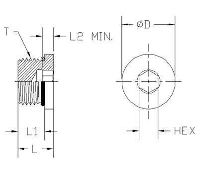 ITEM | P/N | T | L | L1 | L2 MIN. | D | HEX |