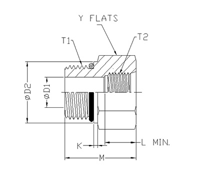 ITEM | P/N | Y FLATS | T1 | T2 | D1 | D2 | K | L MIN. | M |