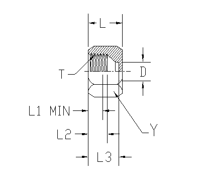 ITEM | P/N | Y FLATS | T | D | L1 MIN | L2 | L3 | L |