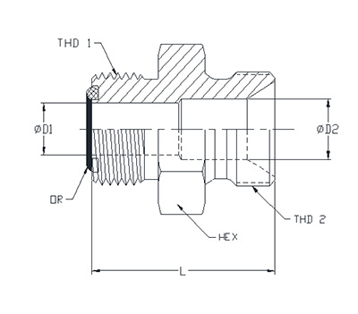 ITEM | P/N | HEX | THD 1 | THD 2 | L | D1 | D2 | OR |