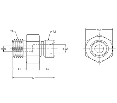 ITEM | P/N | T1 | T2 | L | L1 | L2 | D1 | D2 | HEX |