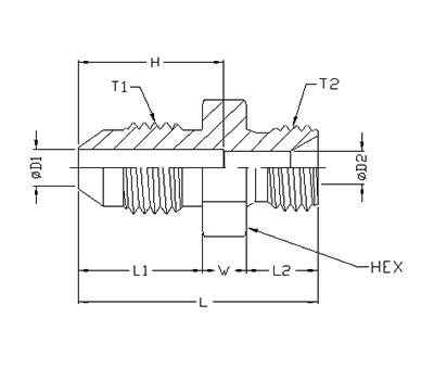 ITEM | P/N | T1 | T2 | L1 | W | L2 | L | H | D1 | D2 | HEX |