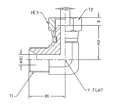 ITEM | P/N | T1 | T2 | M1 | M2 | B | D1 | D2 | HEX | Y FLATS |
